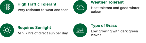 C1 is an improved variety of Green Couch that has been developed to recover rapidly from damage and is extremely hard wearing. It is soft, rich dark green in colour, fine textured, can be easily over sowed with Rye grass for a winter boost, and produces minimal seed head. C1 will perform well with minimal maintenance but with a little extra care, the fine leaf, deep green appearance of this variety is outstanding.
